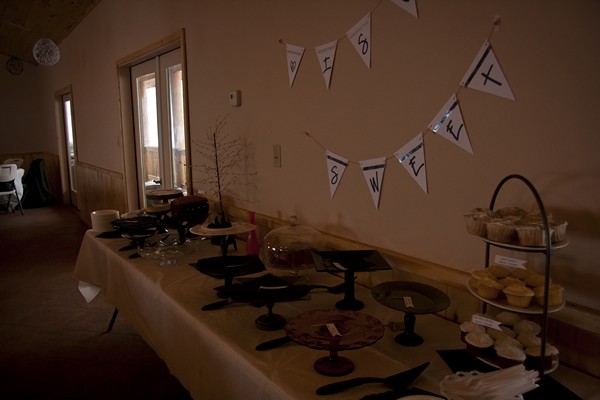 Our dessert buffet came together so perfectly...it was the best way to include special people and to also save a ton of money. We had nine people hand bake with love fifteen varieties of desserts. I made little dessert flags and left them on one of my hand made stands so when that person arrived with their dessert they knew where to put it. We had three varieties of pies, four varieties of cookies, two banana breads, three different cakes and three flavors of cupcakes.